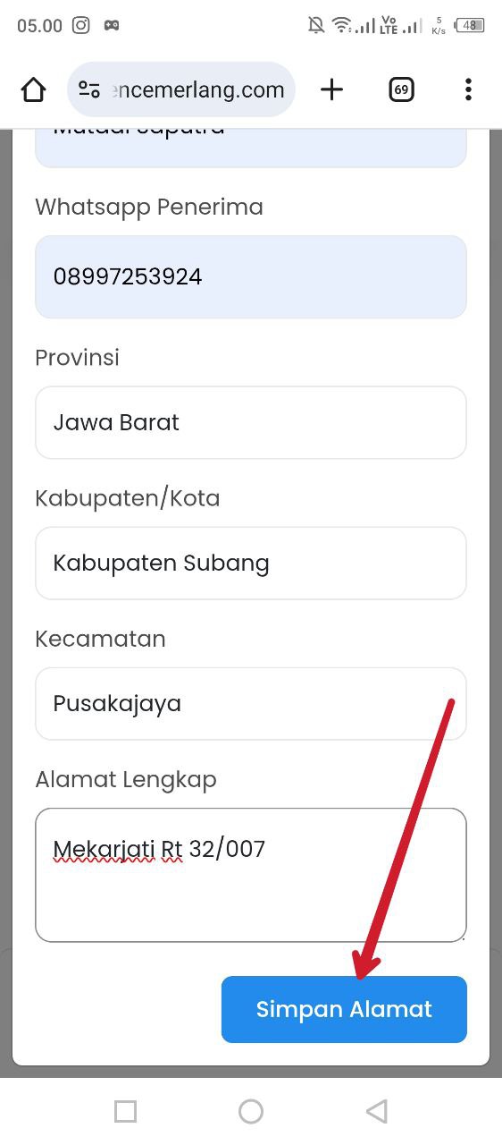 - Silahkan isikan alamat rumah dengan sebenar- benarnya untuk pengriman produknya