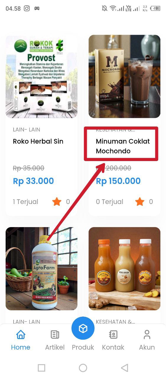 - Pilih produk yang diinginkan: