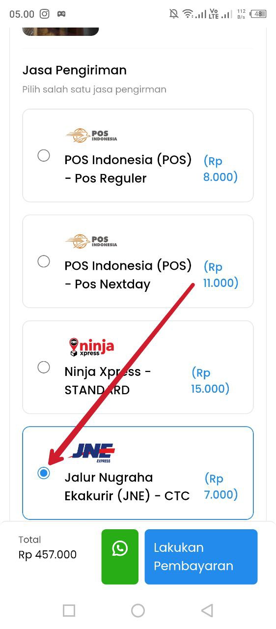 - Pilih expedisi pengirimannya