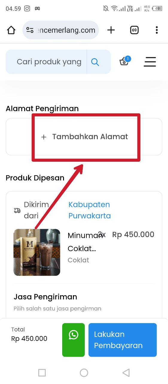 - Kalau yang belum menambahkan alamat rumah, silahkan klik tambah alamat