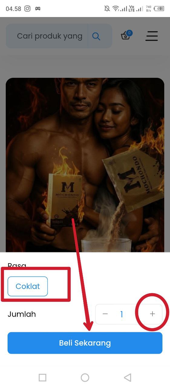 - Pilih jenis produk dan jumlah produk lalu klik beli sekarang